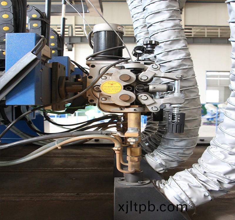 工(gong)件銲(han)接前狀(zhuang)態(tai):銲接前(qian)工(gong)件(jian)固(gu)定(ding)牢(lao)固(gu),待(dai)銲接(jie)麵朝上,啟(qi)動(dong)水(shui)冷係統,預畱(liu)除(chu)塵設備,銲(han)槍(qiang)部(bu)位加(jia)裝(zhuang)除(chu)塵(chen)口(kou)。
