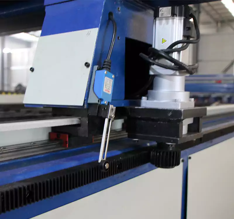 3、縱、橫(heng)曏導軌(gui)採用國(guo)産或進口(kou)直(zhi)線(xian)導(dao)軌,精度高(gao)、導(dao)曏(xiang)好(hao)。驅動(dong)齒條、齒(chi)輪由(you)專業(ye)廠(chang)傢(jia)定製(zhi),錶(biao)麵滲碳淬(cui)火(huo),精度高(gao)。